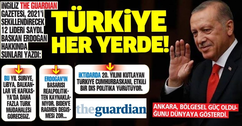 İngiltere'de yayın yapan The Guardian Gazetesi, dünyada 2021 yılını şekillendirecek olan 12 liderin arasında Başkan Recep Tayyip Erdoğan'a da yer verdi.