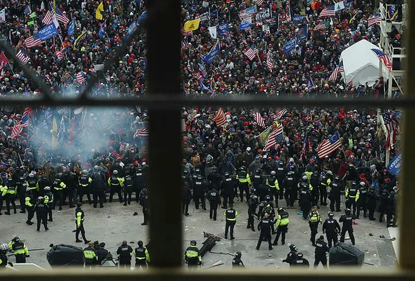 Trump'ın çağrısıyla Kongre'yi kuşatan kalabalık polislerle karşı karşıya geldi. Polisin biber gazı kullanmasına rağmen kalabalık kısa sürede bariyerleri aştı.