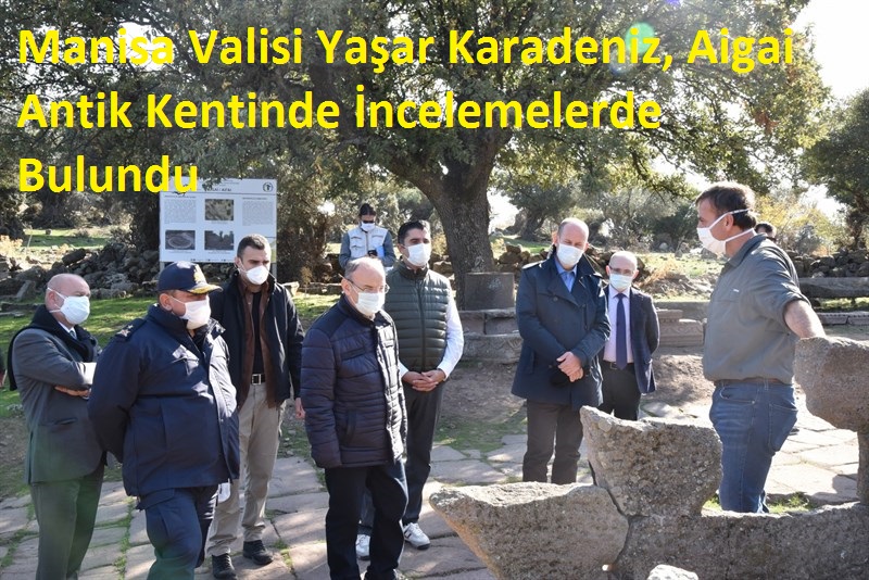 Vali Yaşar Karadeniz, Batı Anadolu'da kurulan 12 Aiol kentinden biri olan ve tarihi M.Ö. 8 inci yüzyıla kadar uzanan Yunusemre İlçesi Yuntdağ Köseler Mahallesi yakınında bulunan Aigai Antik Kentinde incelemelerde bulunarak kazı çalışmalarıyla ilgili Doç. Dr. Yusuf Sezgin'den bilgi aldı.