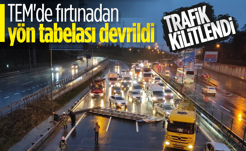 İstanbul genelinde etkili olan kötü hava şartları, hayatı olumsuz yönde etkiliyor. TEM Hasdal- Göktürk bağlantı yolunda saat 07.30 sıralarında rüzgarın etkisiyle yön tabelası devrildi. Yola devrilen tabeladan kaçmak isteyen iki araç kaza yaptı. Olay yerine polis ve itfaiye ekipleri sevk edildi.