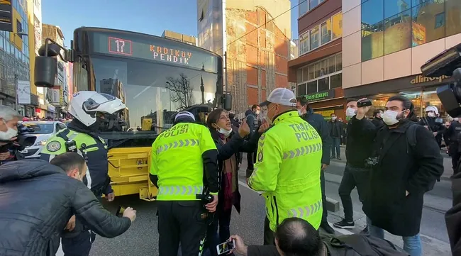 Kadıköy’de eylem yapmak isteyen HDP’lilere polis müdahale etti. Gözaltına alınanların olduğu eylemde HDP’li vekiller trafiği kesti. Polisin ikna etmek istediği HDP’li vekiller trafiği açmayınca vatandaşlar HDP’lilere tepki gösterdi