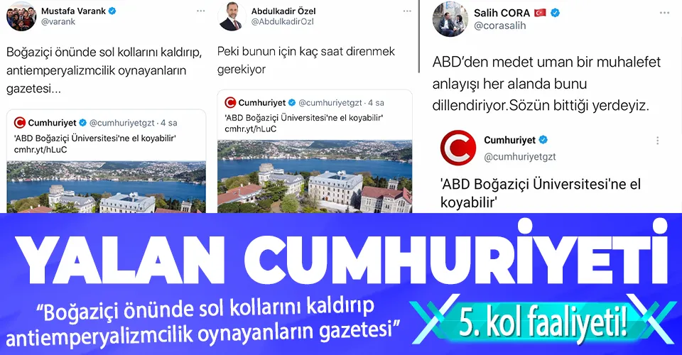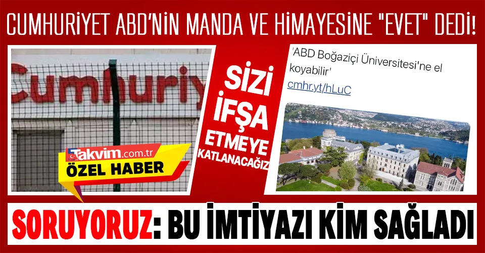 CUMHURİYET GAZETESİ BOĞAZİÇİ ÜNİVERSİTESİ'NE ABD'NİN EL KOYMASINA EVET DEDİ! MANDACI ZİHNİYET YİNE HORTLADI
