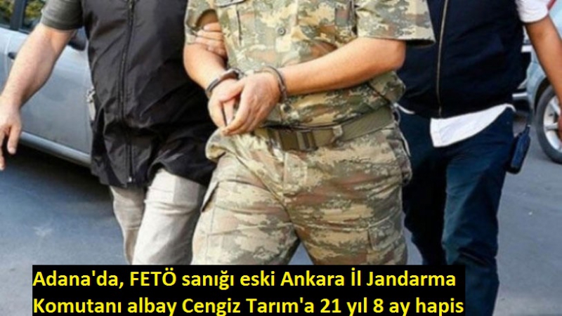 Adana'da Fetullahçı Terör Örgütü (FETÖ - PDY'ye yönelik davada yargılanan eski Ankara İl Jandarma Komutanı Kurmay Albay Cengiz Tarım, 21 yıl 8 ay hapis cezasına çarptırıldı. Sanık Cengiz Tarım, savunmasında, hakkındaki iddiaları reddederek beraat talebinde bulundu.