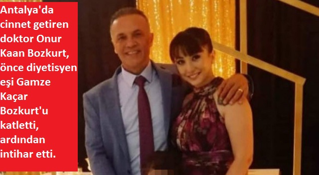 Antalya'da cinnet getiren doktor Onur Kaan Bozkurt, önce diyetisyen eşi Gamze Kaçar Bozkurt'u katletti, ardından intihar etti. Acı olay, akşam saatlerinde kreşten gelen ve anne babasından cevap alamayan küçük kızın anneanesine haber vermesiyle ortaya çıktı. Doktor ile diyetisyen eşinin aralarındaki yaş farkından dolayı kıskançlık nedeniyle sürekli tartıştıkları öğrenildi.
