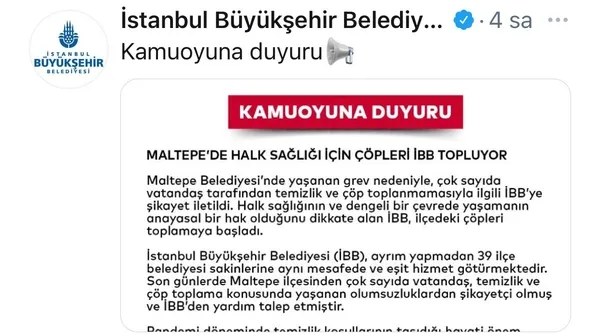İBB'nin sosyal medyadan yaptığı açıklamada, Anayasa'nın ve ilgili kanunların çevre temizliği maddelerine atıf yapıldı. Ancak çöp yığınlarının neden 5 gün boyunca cadde ve sokaklarda kalmasına rağmen toplanmadığı konusuna açıklık getirilemedi.