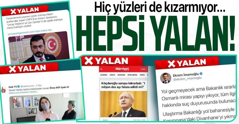 Sosyal medyada algı operasyonu yaparak birçok yalan servis eden CHP'li isimler ve yandaşlarının yalan rüzgarı bu hafta da sürdü. İşte haftanın yalanları ve gerçekler...