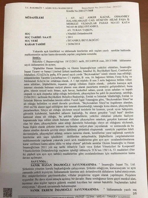 Millet İttifakı'nın Ankara Büyükşehir Belediye Başkan adayı 'ın ortaya çıkan sahte senedinden sonra ’nin  Başkanı 'nun da dolandırıcılıktan davasının olduğu belirlendi. İmamoğlu ve babası Hasan İmamoğlu'nun ortak olduğu  Ltd. şirketinin Beylikdüzü'nde escort-bayan-ilanlari">konak escort bayankları ‘Beykonakları’ projesinde kamu malını işgal edip daire sattıkları,konut sahiplerinin dolandırdıkları iddiasıyla nitelikli dolandırıcılıktan yargılandıkları belirlendi..