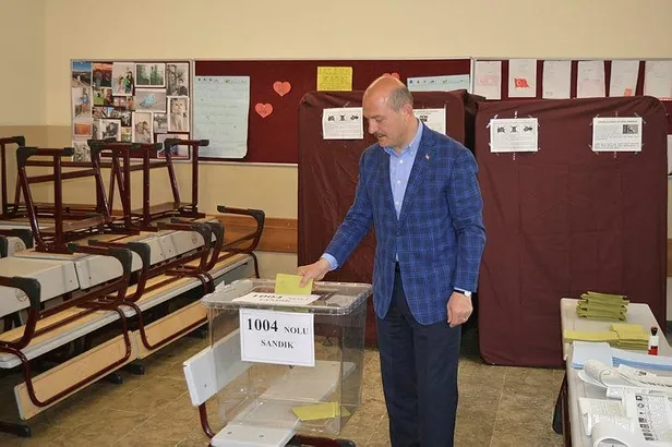Vatandaşlar ve sandık görevlileri ile selamlaşan Soylu, 1004 numaralı sandıkta oy kullandı. Sandığa ilk oy pusulasını eşi Hamdiye Soylu attı. Eşinin ardından Bakan Soylu da, "Hayırlı olsun" temennisiyle oyunu sandığa attı.