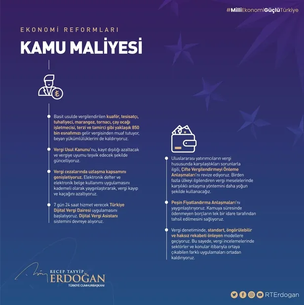 Türkiye dijital vergi dairesi uygulamasını başlatıyoruz. Dijital vergi asistanı sistemini devreye alıyoruz. Çifte vergilendirmeyi önleme anlaşmalarını revize ediyoruz.