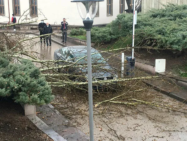 Son dakika haberi... Türkiye Büyük Millet Meclisi bahçesine yıldırım düştü. Bir ağaç yıldırım düşmesi sonucu yarıldı. Yıldırımın isabet ettiği ağacın kopan parçası aracın üzerine düştü.