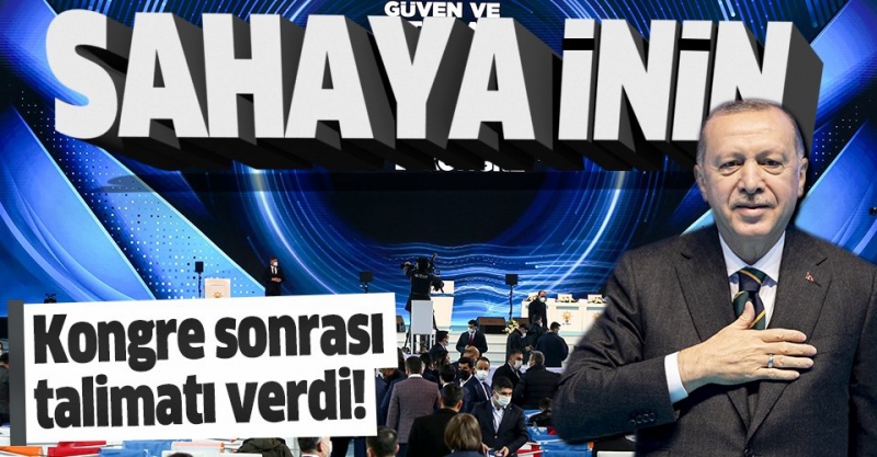 Başkan Recep Tayyip Erdoğan, AK Parti 7. Olağan Kongresi sonrasında teşkilatlara 'Sahaya inin' talimatı verdi. Kongre sürecinde yüzde 70 yenilenen AK Parti kadroları saha çalışması kapsamında vatandaşlarla daha sıkı diyalog kuracak. Yeni göreve gelen yöneticiler hem kendileri vatandaşa tanıtacak hem de vatandaşın nabzını tutacak.