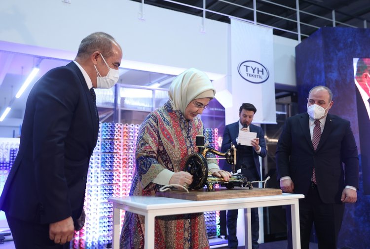 Konuşmaların ardından Cumhurbaşkanı Recep Tayyip Erdoğan’ın eşi Emine Erdoğan ve Sanayi ve Teknoloji Bakanı Mustafa Varank, Ticaret Bakanı Ruhsar Pekcan ve Gençlik ve Spor Bakanı Mehmet Muharrem Kasapoğlu, TYH Tekstil Yönetim Kurulu Başkanı Selçuk Mehmet Kaya ile birlikte fabrikada incelemelerde bulundu.