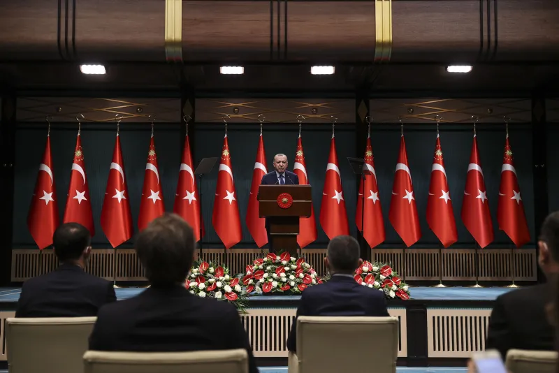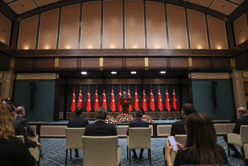 Ana Muhalefet Partisi'nin başını çektiği bir kesimin de bu tartışmanın ekonomik sıkıntıların üzerinin örtülmesi amacıyla kullanıldığını iddiasını hatırlatan Cumhurbaşkanı Erdoğan, "Hâlbuki ekonomiye asıl zararı kendilerinin sürekli körüklediği bu tür tartışmalar vermektedir. Çarşamba günü Türkiye ekonomisinin salgın şartlarında hangi başarıları ortaya koyduğunu ayrıntılı şekilde milletimizle paylaşacağım. Kendi ülkelerinin ve milletinin felaketinden iktidar devşirme peşinde koşan muhterisleri milletimizin takdirine havale ediyoruz" dedi.