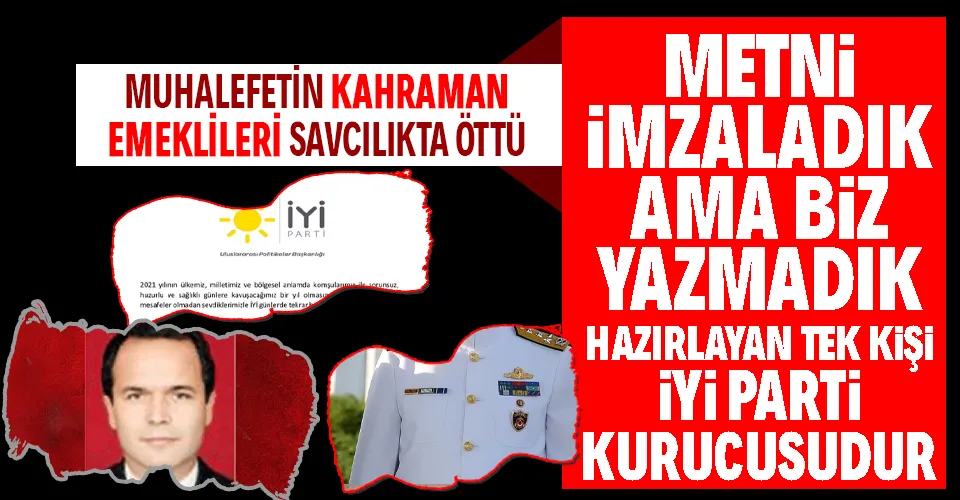 Bazı emekli amirallerin geçmişteki kötü ve çirkin olayları hatırlatan bir yöntem ve üslupla bildiri yayınlaması kabul edilemez. Bu yöntem ve üslubun siyasi hayatımızda neye karşılık geldiği bellidir.