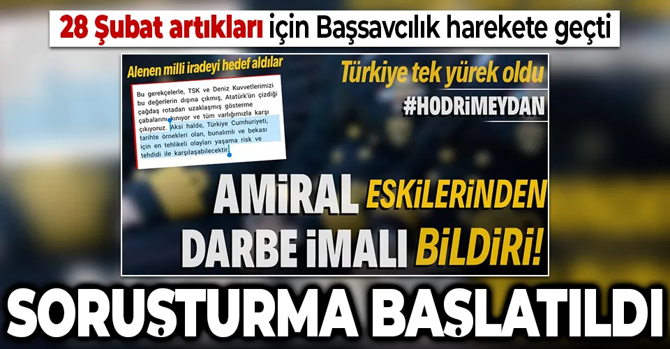 104 emekli amiralin darbe imalı bildirisine TCK 316'dan soruşturma başlatıldığı öğrenildi.