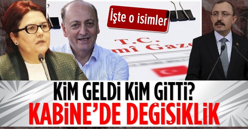 Kabine değişikliğinde son dakika. Başkan Recep Tayyip Erdoğan'ın imzaladığı kabine revizyonu ve yeni bakanlıkların kuruluşuna ilişkin karar Resmi Gazete'de yayımlandı. Buna göre Cumhurbaşkanlığı Kabinesinde Aile ve Sosyal Hizmetler Bakanlığı ile Çalışma ve Sosyal Güvenlik Bakanlığı kuruldu. Aile ve Sosyal Hizmetler Bakanlığına Derya Yanık, Çalışma ve Sosyal Hizmetler Bakanlığına Vedat Bilgin atandı. Son dakika kabine değişikliğine göre ayrıca Ticaret Bakanı Ruhsar Pekcan'ın görevine de son verilerek yerine Mehmet Muş getirildi. İşte yeni bakanlar ve bakanlıklara ilişkin bilgiler