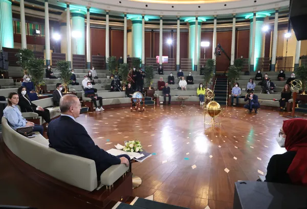 Son dakika haberine göre Başkan Recep Tayyip Erdoğan, Millet Kütüphanesi'nde gençlerle bir araya geldi.
