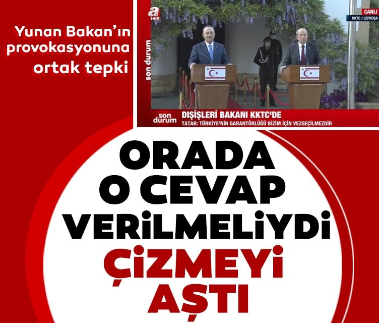 KKTC Cumhurbaşkanı Ersin Tatar, "Orada o cevap verilmeliydi. Çizmeyi aştı. Sayın Bakan (Çavuşoğlu) gerekli cevabı vermiştir. Teşekkür ediyorum." dedi.