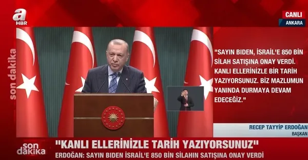 Bugün Biden'ın, İsrail'e silah onayı ile ilgili anlaşmasını gördük. 850 bin silah onayı. Lafa geldiğinde silahsızlanmayı konuşuyorlar. Sayın Biden, sözde Ermeni Soykırımı'nda Ermenilerin yanında yer aldı. Şimdi de, orantısız bir saldırı ile Gazze'ye saldıran ve yüz binlerce insanın şehadetine vesile olan bu olayda da siz kanlı ellerinizde bir tarih yazıyorsunuz. Biz bu konularda çok daha fazla duramayız, durmayacağız. Bugün de tekrar hatırlatıyoruz, 84 milyon hep birlikte Kudüs nöbetimizi sürdürüyoruz, sürdürmeye devam edeceğiz.