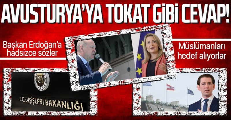 Avusturya Entegrasyon Bakanı Susanne Raab, ülkesindeki Müslüman düşmanlığı ve Viyana'daki taşkınlıklardan dolayı Başkan Erdoğan'ı suçladı. Bakan Raab'ın küstah açıklamalarına Dışişleri Bakanlığı Sözcüsü ve Büyükelçi Tanju Bilgiç'ten tepki geldi. Bilgiç yaptığı açıklamada, "Gerçeklerden uzak ve kabul edilemez" ifadelerine yer verdi.