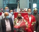 Ankara Esenboğa Havalimanı'na iniş yapan başarılı sporcu, mehter takımı tarafından coşkulu bir törenle karşılandı.