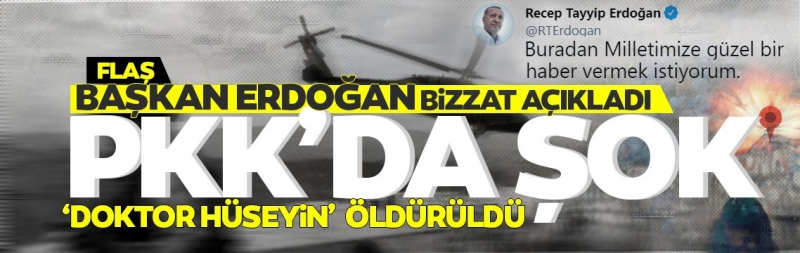 Son dakika haberi... Başkan Recep Tayyip Erdoğan, PKK'nın üst düzey isminin öldürüldüğünü duyurdu. Başkan Erdoğan ayrıca, "Hain ve bölücü örgütün Mahmur'u terörün 'kuluçka merkezi' olarak kullanmasına müsaade etmeyecek, terörü kaynağında kurutmaya devam edeceğiz." ifadelerini kullandı.