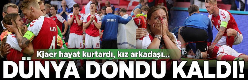 16. Avrupa Futbol Şampiyonası (EURO 2020) B Grubu'ndaki Danimarka-Finlandiya maçında kalbi duran Danimarkalı oyuncu Christian Eriksen'in bilincinin açık olduğu öğrenildi. Korku dolu anların yaşandığı sırada takım kaptanı Simon Kjaer'in soğuk kanlılıkla yaptığı müdahaleler alkış topladı.