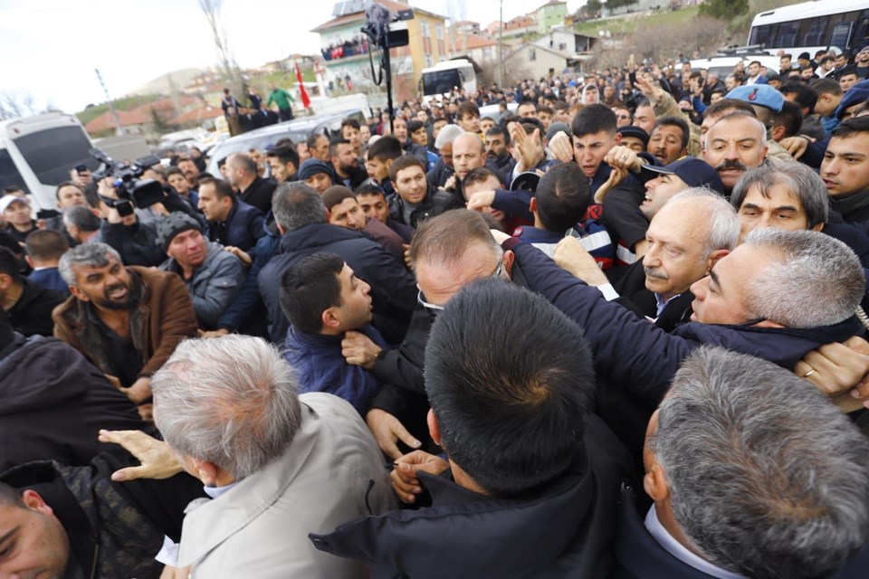 Cenazede önce Kılıçdaroğlu'nu yuhalayan vatandaşlar daha sonra da yaşanan arbedede Kılıçdaroğlu'na saldırdı. CHP lideri polis kontrolünde bir evde tutuluyor.