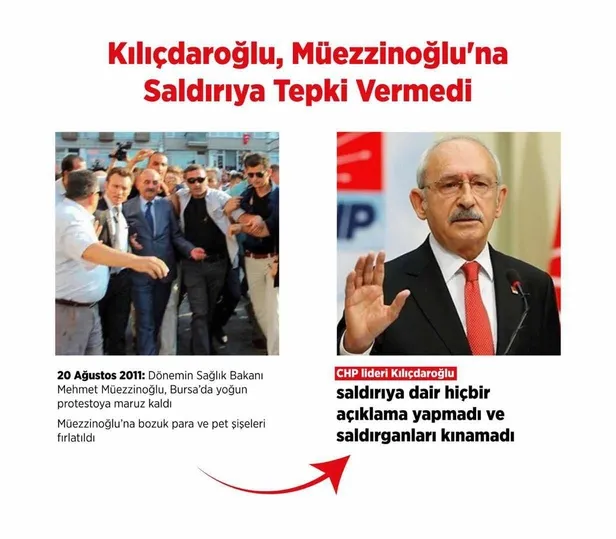 20 Ağustos 2011 yılında dönemin Sağlık Bakanı Mehmet Müezzinoğlu Bursa'da protestoya maruz kalmıştı ve bu propagatif saldırı sonrası Kılıçdaroğlu hiçbir açıklama yapmamıştı.