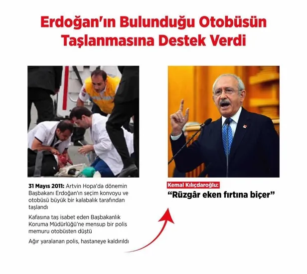 31 Mayıs 2011 yılında Artvin Hopa'da dönemin Başbakanı Erdoğan'ın seçim konvoyu ve otobüsü büyük bir kalabalık tarafından taşlandı. Kafasına taş isabet eden Başbakanlık Koruma Müdürlüğü'ne mensup bir polis memuru otobüsten düştü. Ağır yaralanan polis hastaneye kaldırıldı. Kemal Kılıçdaroğlu ise bu olayın ardından skandal bir açıklamaya imza attı. Kemal Kılıçdaroğlu, "Rüzgar eken fırtına biçer" ifadesini kullandı.