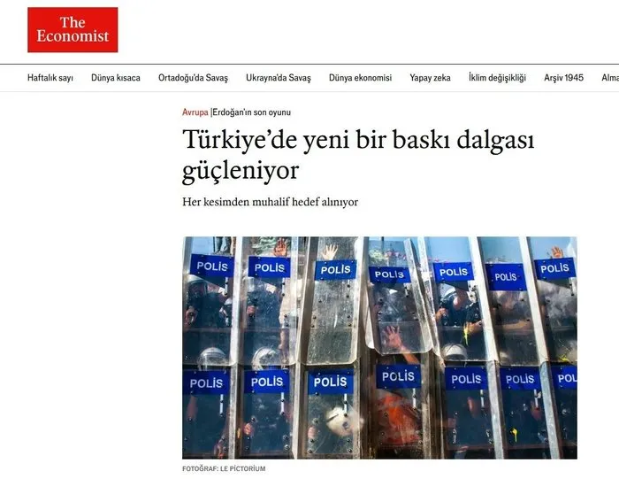 İngiltere merkezli The Economist dergisi, Türkiye’ye yönelik algı operasyonlarını sürdürüyor. Son olarak "Türkiye’de yeni bir baskı dalgası güçleniyor" başlıklı haberinde, bağımsız yargı kararlarını çarpıtarak Başkan Recep Tayyip Erdoğan’ı hedef aldı. Haberde CHP’li belediye başkanlarına yönelik soruşturmalar ve İBB Başkanı Ekrem İmamoğlu hakkındaki süreçler, Erdoğan’ın muhalefeti bastırma çabası olarak yorumlandı. Bu algı operasyonunun yalnızca uluslararası medyada değil, TÜSİAD Olağan Genel Kurulu’ndan da benzer sözlerin gelmesi dikkat çekti.