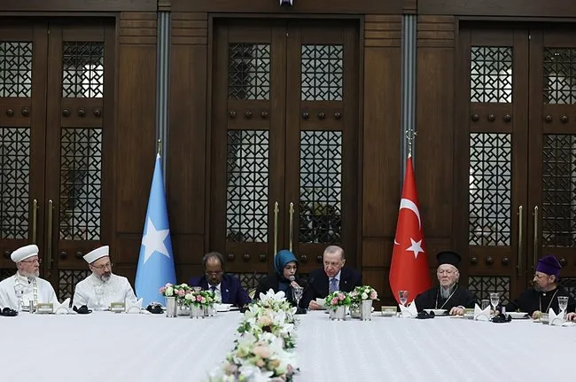 Somali Cumhurbaşkanı Hasan Şeyh Mahmud'un da katıldığı iftar programındaki konuşmasında, Mahmud'u Türkiye'de misafir etmekten ve iftar sofrasını Türkiye'deki dini azınlık cemaatlerinin temsilcileriyle paylaşmaktan büyük bir memnuniyet duyduğunu belirten Erdoğan, davete iştirak edenlere teşekkür etti.
