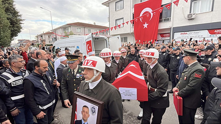 14:48Gürcistan’da, askeri kargo uçağının düşmesi sonucu şehit olan Hava Uçak Bakım Astsubay Başçavuş Akın Karakuş'un (39) cenazesi memleketi Sakarya’ya getirildi. Şehit eşinin askeri üniformasını giyen Sinem Karakuş, Türk bayrağına sarılı tabuta sarılıp gözyaşı döktü.