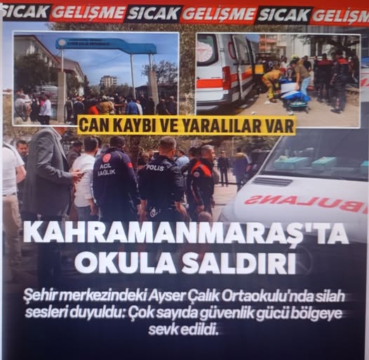 Siverek’teki okul saldırısının yankıları sürerken, bu kez acı haber Kahramanmaraş’tan geldi. Onikişubat ilçesinde bulunan Ayser Çalık Ortaokulu, kimliği belirsiz kişi veya kişilerce açılan ateşle sarsıldı. Ders saatinde yankılanan silah sesleri üzerine bölgeye çok sayıda özel harekat polisi, çevik kuvvet ve 112 Acil Servis ekibi sevk edildi. İlk gelen bilgiler, okul binasında ölü ve çok sayıda yaralı olduğu yönünde; şehirde tam anlamıyla can pazarı yaşanıyor.