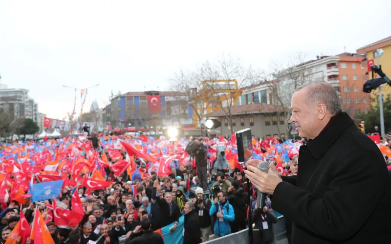 Erdoğan, "Bölgemizde yaşanan hadiseler, ekonomimize yönelik artan saldırılar, 31 Mart seçimlerini sıradan bir mahalli idareler seçimi olmaktan çıkarmıştır. Bu seçimler sadece belediye değil aynı zamanda beka seçimleridir. Bu seçimler Cumhuriyetimizin 100. yılına nasıl gireceğimizin oylanacağı seçimlerdir. AK Parti ve Cumhur İttifakı olarak 31 Mart'a bu şekilde bakıyor, bu anlayışla hazırlanıyoruz." diye konuştu.