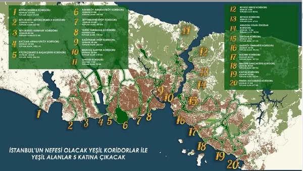 Binali Yıldırım'n 398 kilometre uzunluğunda yeşil koridorları, Millet Bahçeleri ile İstanbul'un 39 ilçesini kapsıyor.