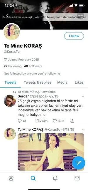 AK Parti seçim broşürleri dağıtan bir genci terbiyesizce sözlerle rencide eden İyi Parti Pendik İlçe Yönetim Kurulu Üyesi Mine Koraş'ın gerçek yüzü deşifre oldu. Sosyal medyada birbirinden farklı birçok hesabı bulunan Koraş, Başkan Erdoğan'a da alçakça hakaret etmiş.