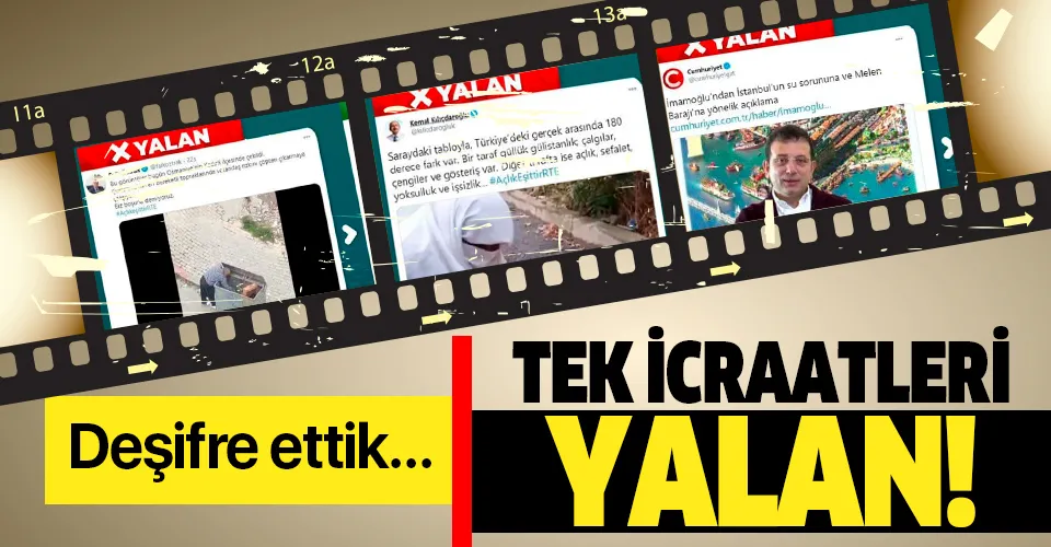 Sabah'ın haberine göre, CHP Genel Başkanı Kemal Kılıçdaroğlu'nun Çin aşısına ilişkin açıklamaları, İstanbul Büyükşehir Belediye Başkanı Ekrem İmamoğlu'nun, Kasımpaşa'daki Divanhane'nin yıkılmaya başlandığına yönelik iddiası ve CHP eski Milletvekili Eren Erdem'in çıplak aramaya ilişkin açıklamalarının yalan olduğu gözler önüne serildi.