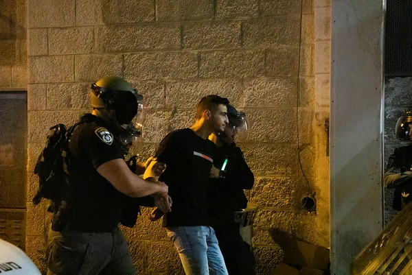 İsrail polisi bazı Filistinli gençleri de gözaltına aldı. Yaklaşık yarım saat süren müdahalenin ardından durum normale döndü.
